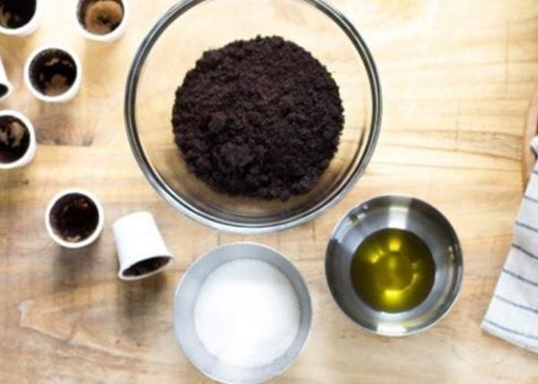 Bước 1: Tiến hành trộn dung dịch dầu dừa với cà phê bột
