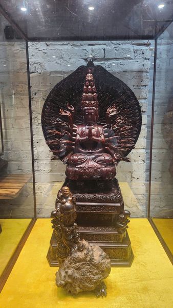 Không chỉ có tượng Di Lặc, Bameca còn trưng bày tượng "Toàn Gia Phúc", một tác phẩm gỗ đặc biệt mang đậm ý nghĩa văn hóa Á Đông. Tượng khắc họa hình ảnh cả gia đình sum họp, ông bà – cha mẹ – con cháu quây quần bên nhau, gợi nhớ về những giá trị cốt lõi: tình thân, sự gắn kết, niềm vui gia đình.